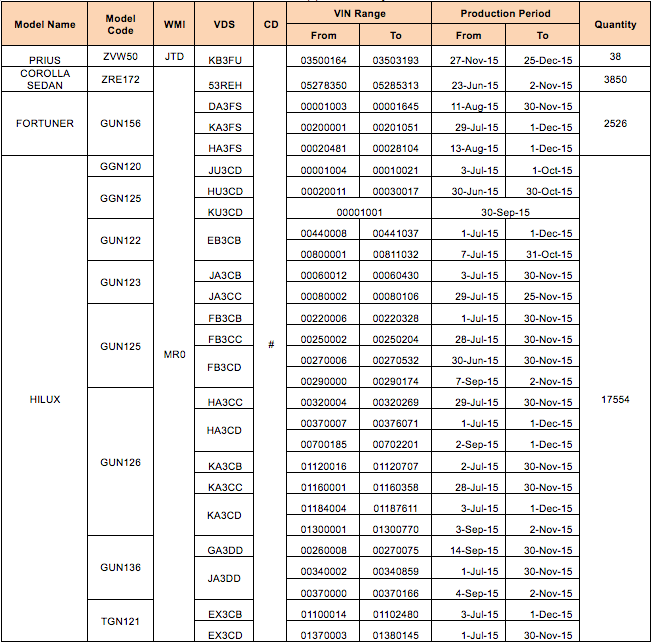 Safety Recalls For Toyota Hilux Yaris